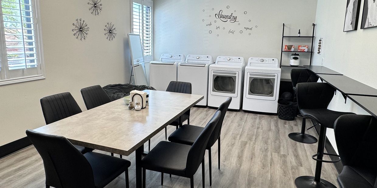 We’ve certainly covered what we‘re doing for your clients, but what about you, the tenant? We’re glad you asked! We provide a spacious, 250 sq ft. break room furnished with a refrigerator, microwave, ample seating, and a gourmet coffee machine… ALL FOR YOU. We invite you to indulge in iced or hot specialty coffees, teas, hot chocolate, or infused water to keep you energized for your busy day. We also supply brand-new washers and dryers, laundry detergent and fabric softener to keep your linens clean. We want you to enjoy your down time, and are happy to provide a welcoming space for you to do so.